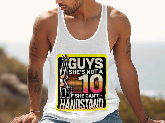 She's Not A 10 If She Can't Handstand Bold Graphic Tank Top