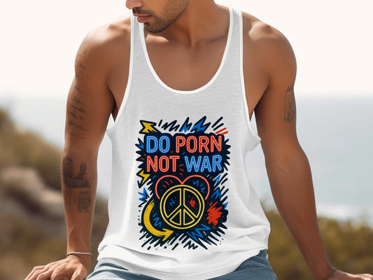 Do Porn Not War Tank Top, Peace Symbol Shirt, Colorful Graphic Tank Top, Anti War Message Tank Top, Trendy Tank Top