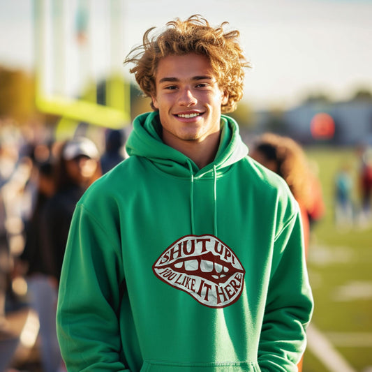 Shut Up You Like It Here Graphic Statement Unisex Hoodie