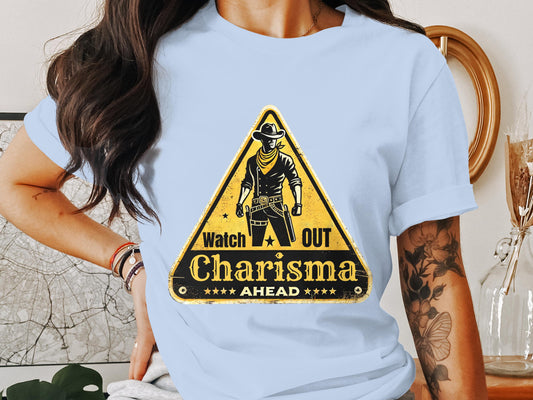 Watch Out Charisma Ahead Cowboy Danger Sign Style T-Shirt