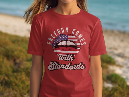 T-shirt graphique « La liberté est assortie de normes » avec le drapeau rebelle