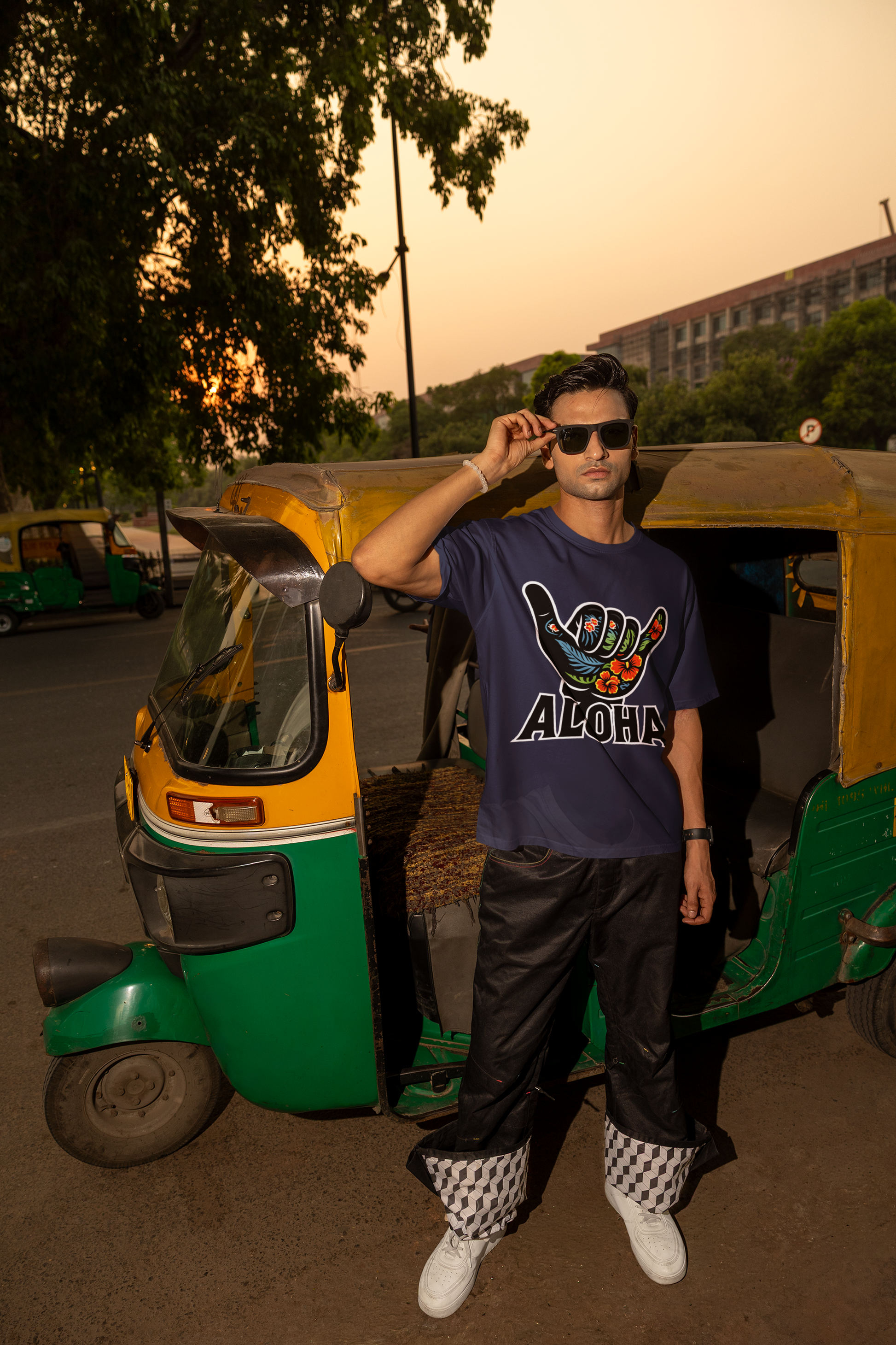 This graphic hits with a bold shaka hand loaded with aggressive tropical florals and the word "ALOHA" stamped like a statement, not a greeting. This isn’t about peace and palm trees — it’s about confidence, presence, and owning your space with a laid-back smirk. The contrast between raw street attitude and island visuals gives this tee a sharp, almost ironic edge that says you’re relaxed because you’re in control.