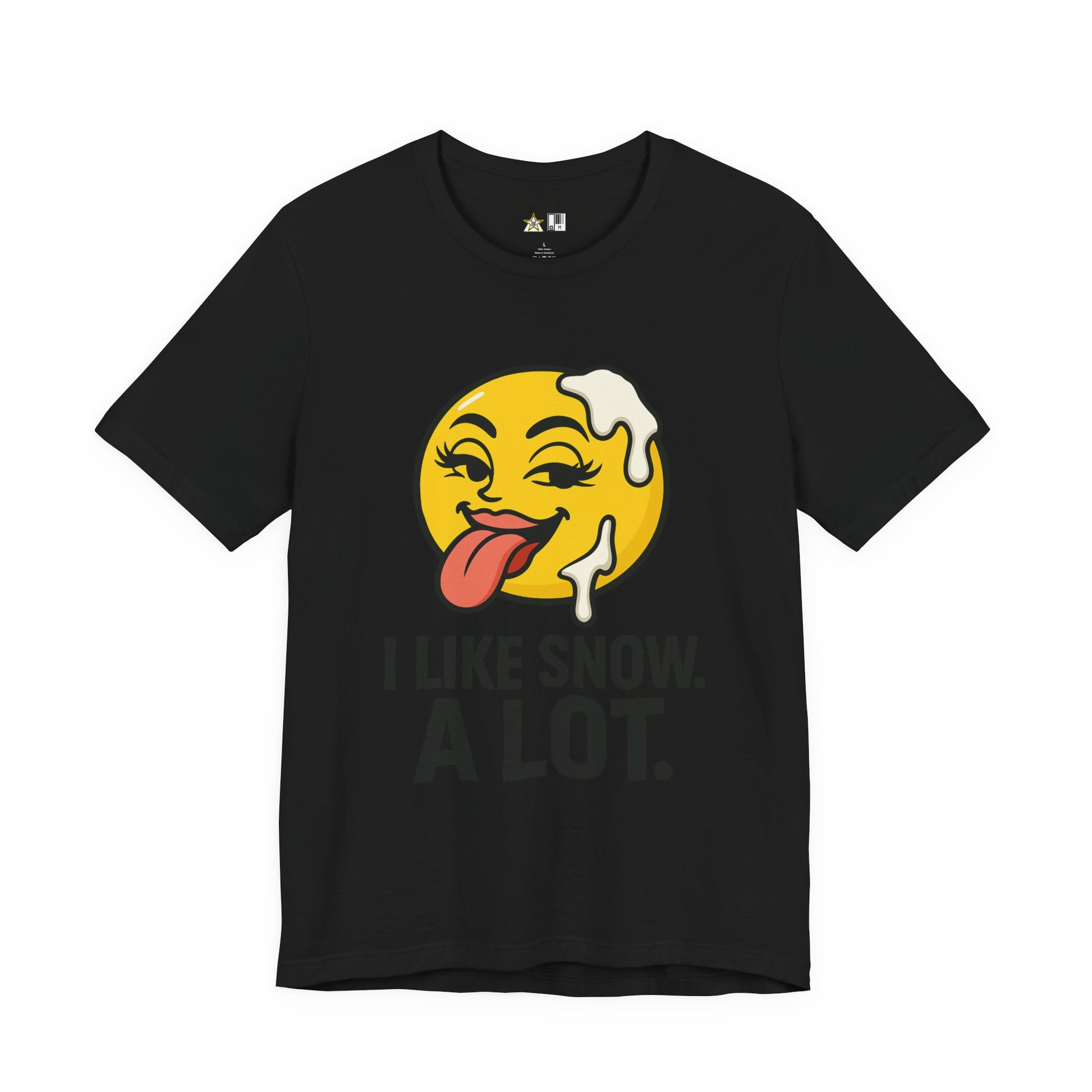 This bold streetwear t-shirt turns winter attitude into a full-on statement, featuring a mischievous melting emoji with a tongue-out grin and the unapologetic text “I LIKE SNOW. A LOT.” The artwork blends playful rebellion with cold-weather confidence, like someone who enjoys winter a little too much and owns it without explanation. It’s humorous, dominant, and self-aware, taking a simple phrase and flipping it into a graphic tee that hits harder than expected. Designed for everyday comfort, the fabric feels soft and easy while holding up through real wear, making it perfect for long days, cold nights, and gym-to-street transitions. This tee pairs effortlessly with jeans, cargos, joggers, hoodies, or a heavy jacket when temperatures drop and attitudes rise. It’s not about liking winter quietly—it’s about broadcasting it with confidence. Made for a guy who takes space and a woman who leans into her edge, this graphic tee turns cold obsession into streetwear armor.