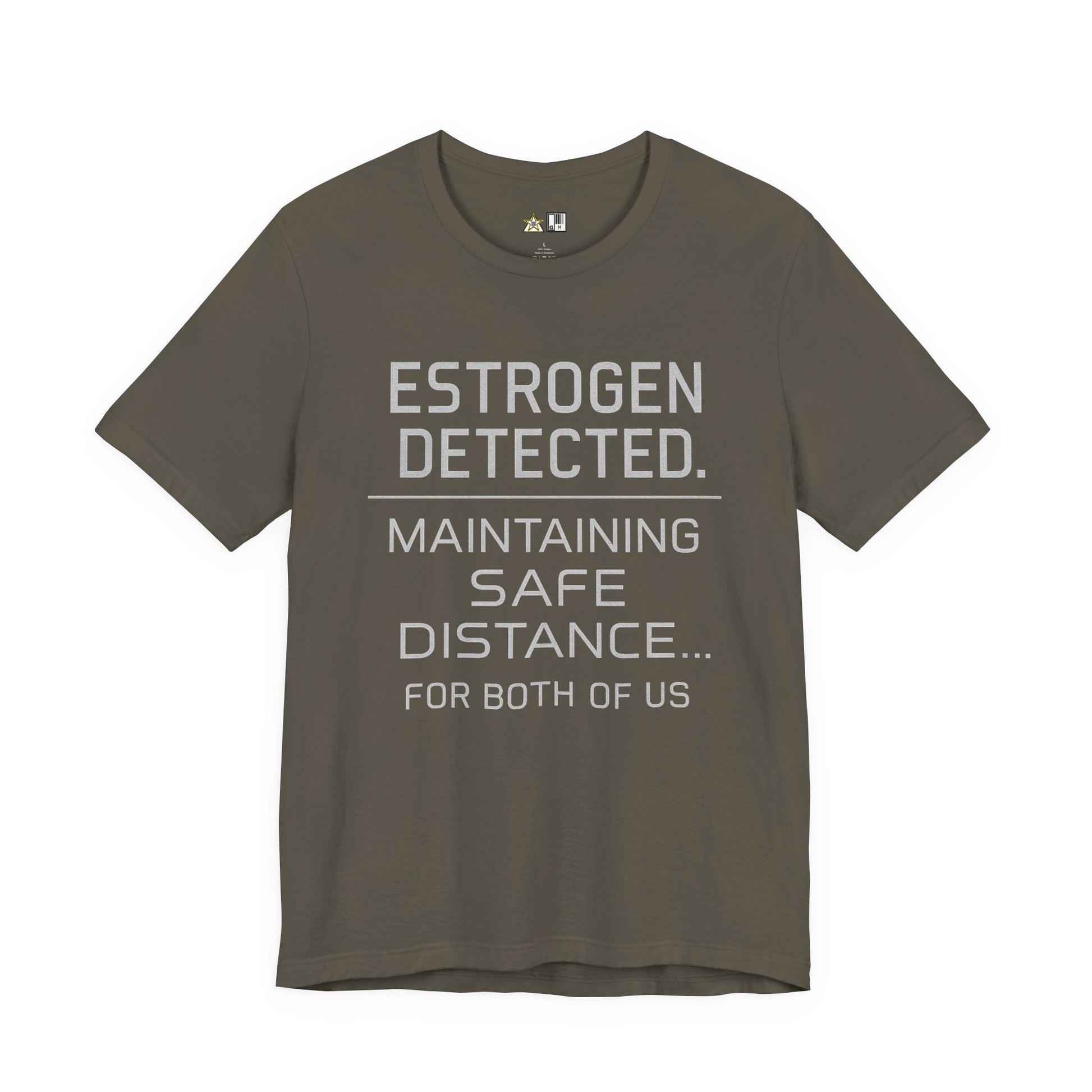 This graphic tee hits with a clean, clinical layout that reads exactly: “ESTROGEN DETECTED. / MAINTAINING SAFE DISTANCE… / FOR BOTH OF US.” The sterile typography and warning-style spacing give it a controlled, almost official feel, like a system alert rather than a joke. The power of the design sits in restraint—no illustration, no distraction, just a calm message loaded with implication. It plays on tension, attraction, and boundaries with sharp humor and quiet dominance, letting confidence speak without noise. Comfortable, soft, and built for daily wear, this tee moves effortlessly from gym sessions to street settings where presence matters more than explanation. Style it with jeans, cargos, joggers, or under a hoodie or jacket to keep the message subtle but unmistakable. This is for people who understand distance, control, and the effect they have simply by standing still.