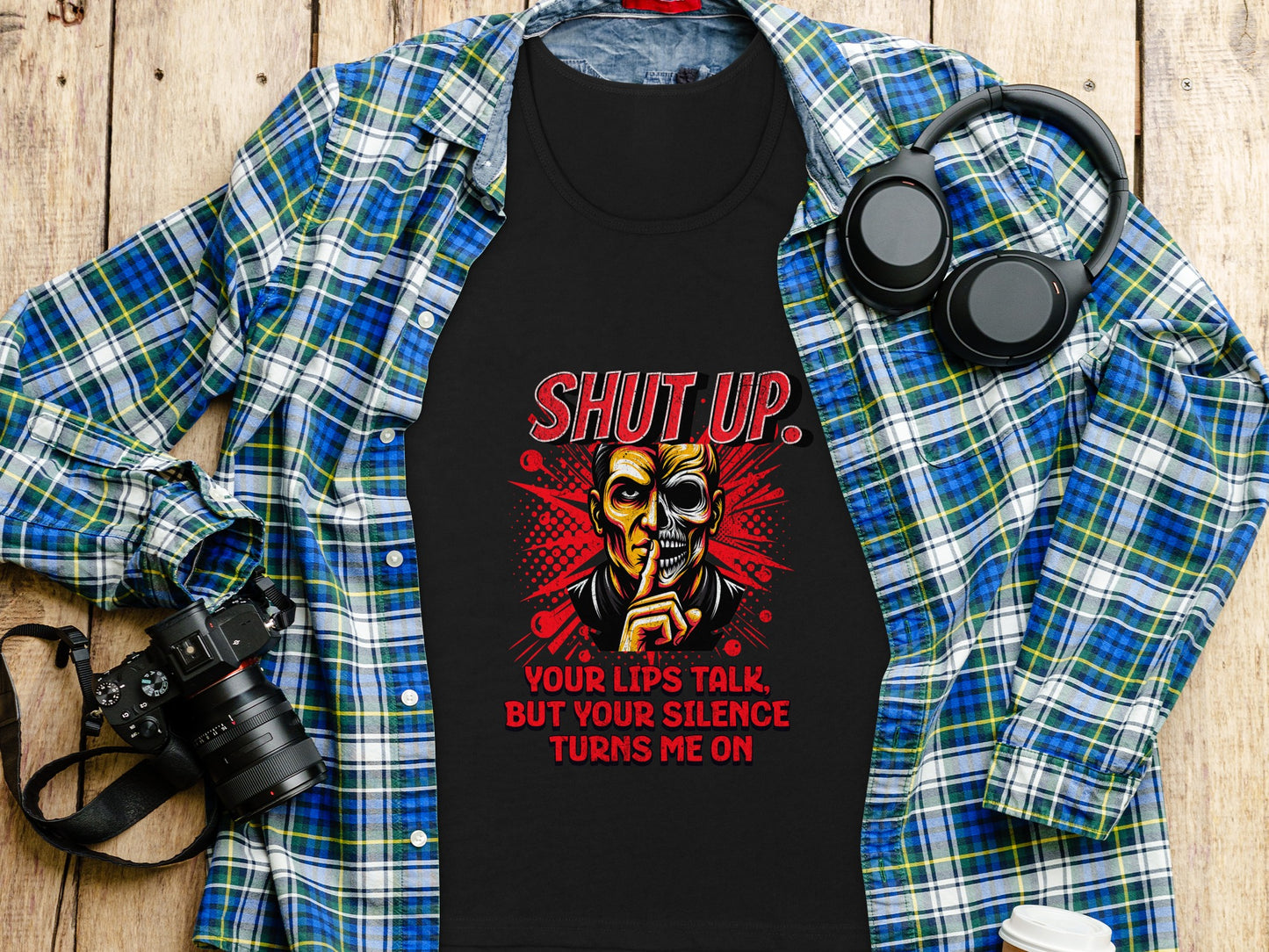 Silence is the ultimate weapon. This Shut Up Lips Tank Top lets them know who's in charge. It's a bold declaration that actions speak louder. Make them submit to your dominance.