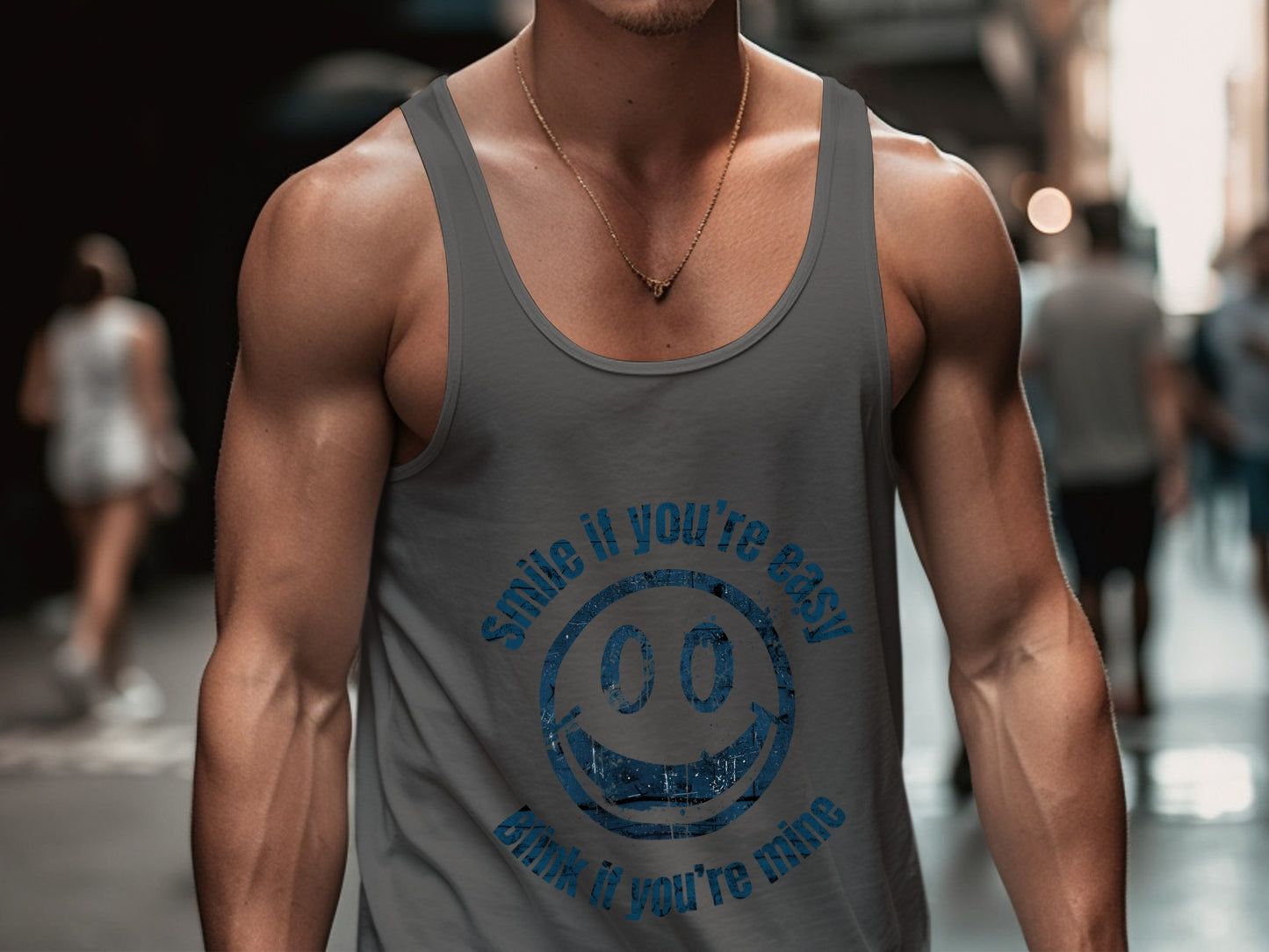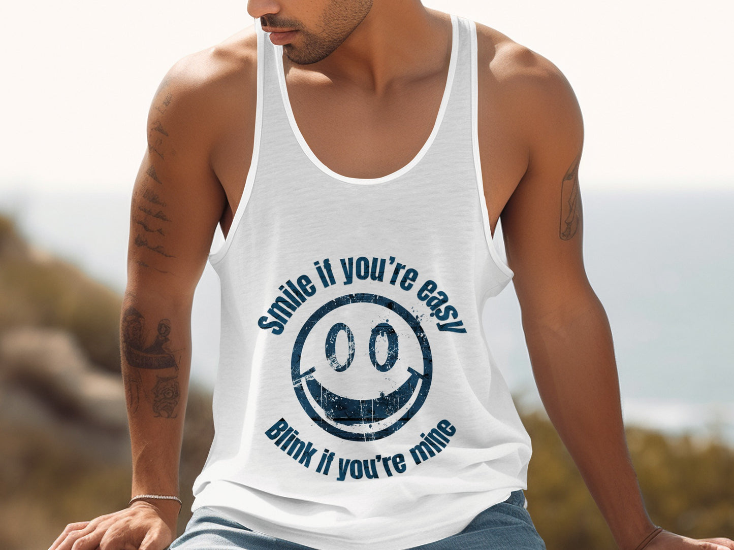 Drop hints to anyone who's watching with the Smile If You Are Easy Blink If You Are Mine Graphic Tank Top. Express your bold personality with this daring design today!