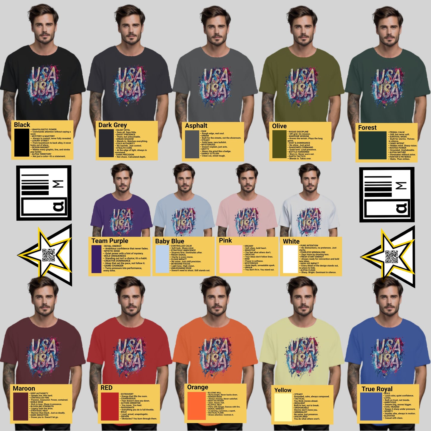 Two USA Nation Bold Strokes Alpha Energy Design T-Shirt